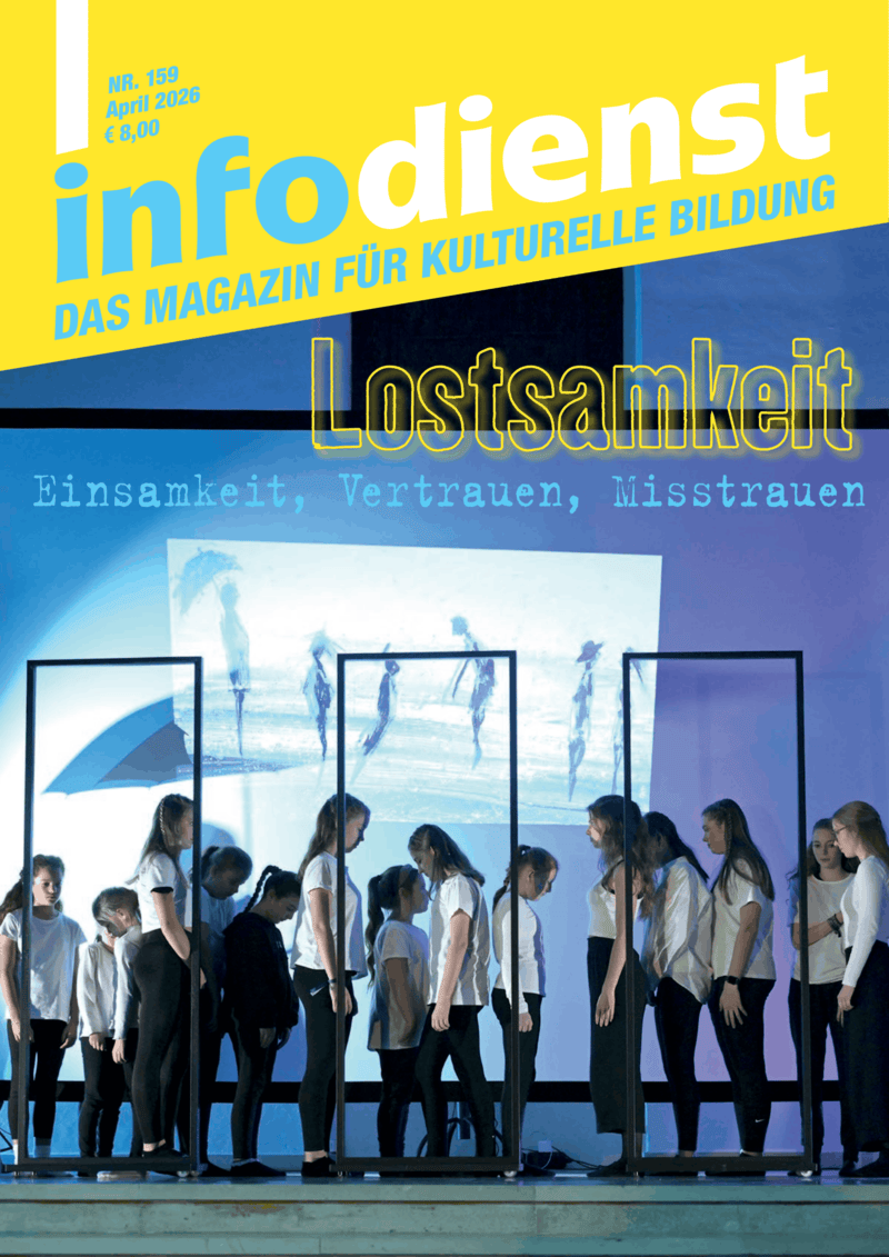 Lostsamkeit. Einsamkeit, Vertrauen, Misstrauen Junge Menschen sind nicht selten einsam und ziehen sich mehr und mehr aus dem gesellschaftlichen Leben zurück. Einsamkeit ist kein individuelles Problem, sondern betrifft uns alle! Wer einsam ist, blickt anders auf die Welt und wird oft misstrauisch. Permanentes Misstrauen vergiftet unser Miteinander – nicht nur im Privaten, sondern auch in Staat und Gesellschaft. Ohne Vertrauen kommen wir in einer Welt voller Ungewissheiten aber keinen Schritt voran. Was tun, wenn Vertrauen nichts anderes bedeutet, als dass ich positive Erwartungen habe? Einen festen Boden bereiten – das machen Jugendkunstschulen und andere Einrichtungen der kulturellen Bildung mit ihren vielfältigen künstlerisch-kulturellen Angeboten für Kinder, Jugendliche und junge Erwachsene Tag für Tag. In diesen Institutionen stehen junge Menschen mit ihren Wünschen, Träumen und Sorgen im Mittelpunkt. Sie werden ernst genommen und bei der Entwicklung von Zukunftsperspektiven unterstützt. Sie lernen, Herausforderungen anzunehmen und zu bewältigen, um Vertrauen in die eigenen Fähigkeiten zu gewinnen oder zu festigen – ein wichtiger Beitrag, um Kinder, Jugendliche und junge Erwachsene in unsicheren Zeiten zu stärken. Lesen Sie hier, was Sie, Politker:innen und alle anderen Erwachsenen tun können, damit junge Menschen selbstbestimmt ihren Platz in der Gesellschaft finden.
